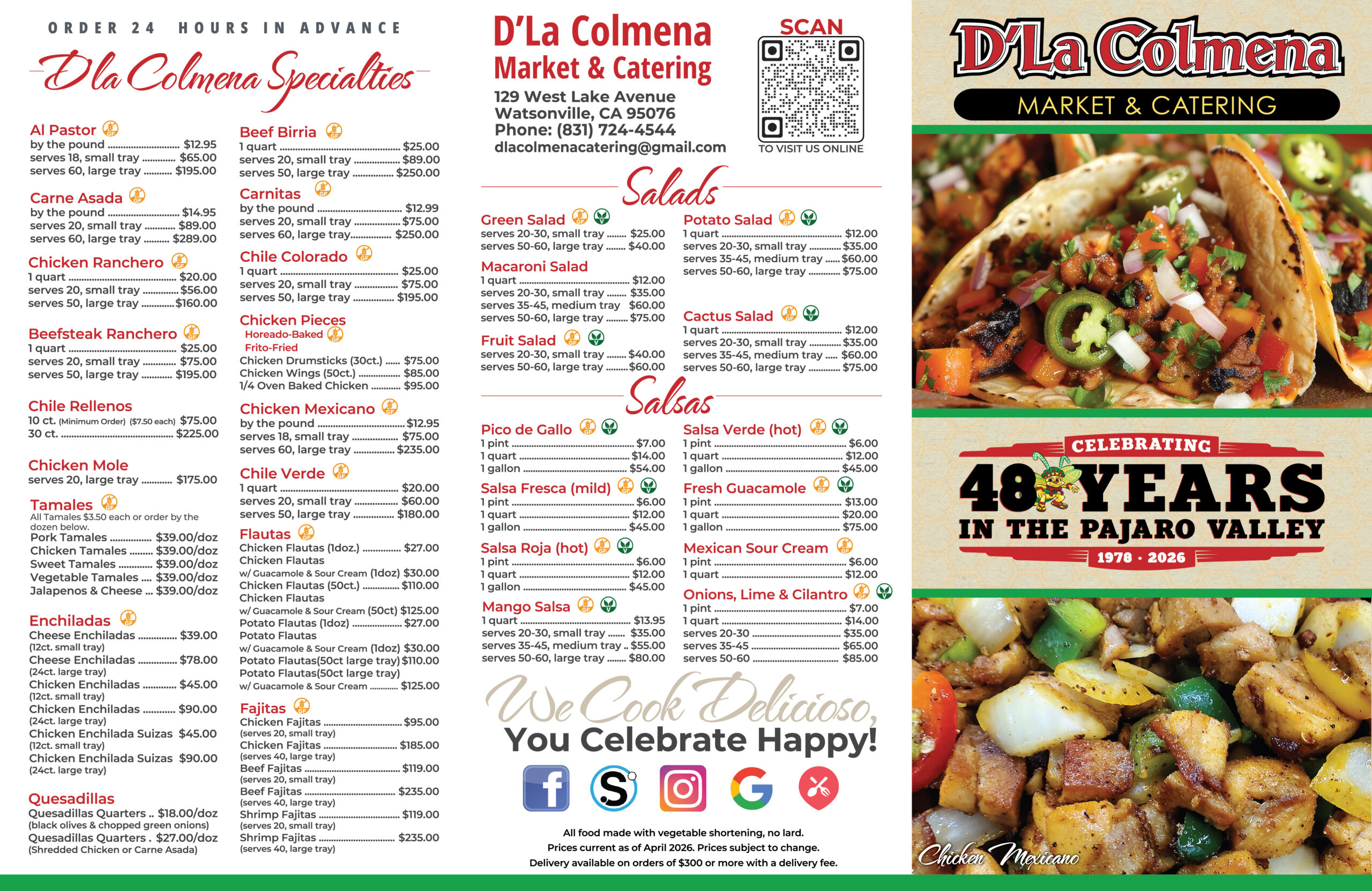 Includes: Rice, Beans, Green Salad w/dressing, Salsa Fresca, Chips, Tortillas, Plates, Forks & Napkins.